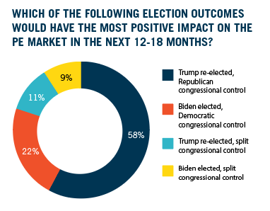 While 58 percent of respondents believed a would-be second term for President Trump combined with Republican congressional control would have the most positive impact on the PE market, a clear electoral result for President Elect Joe Biden also is a relief for dealmakers.